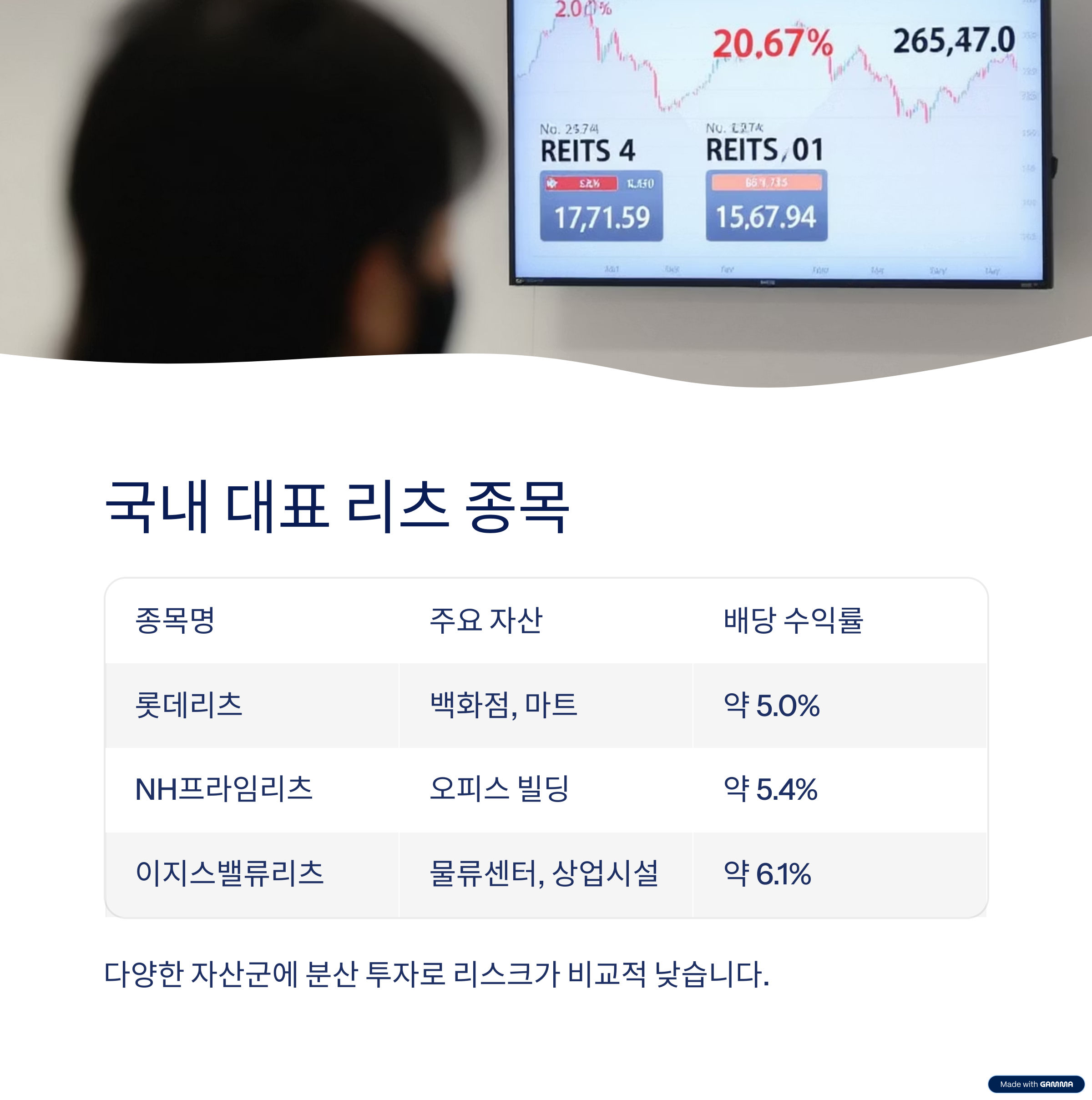 ๋ฆฌ์ธ (REITs)๋ ๋ถ๋์ฐ์ ํฌ์ํ๊ณ ๊ทธ ์์ต์ ๋ฐฐ๋น์ผ๋ก ๋๋ ค์ฃผ๋ ๋ถ๋์ฐ ๊ฐ์ ํฌ์ ๋ฐฉ์์