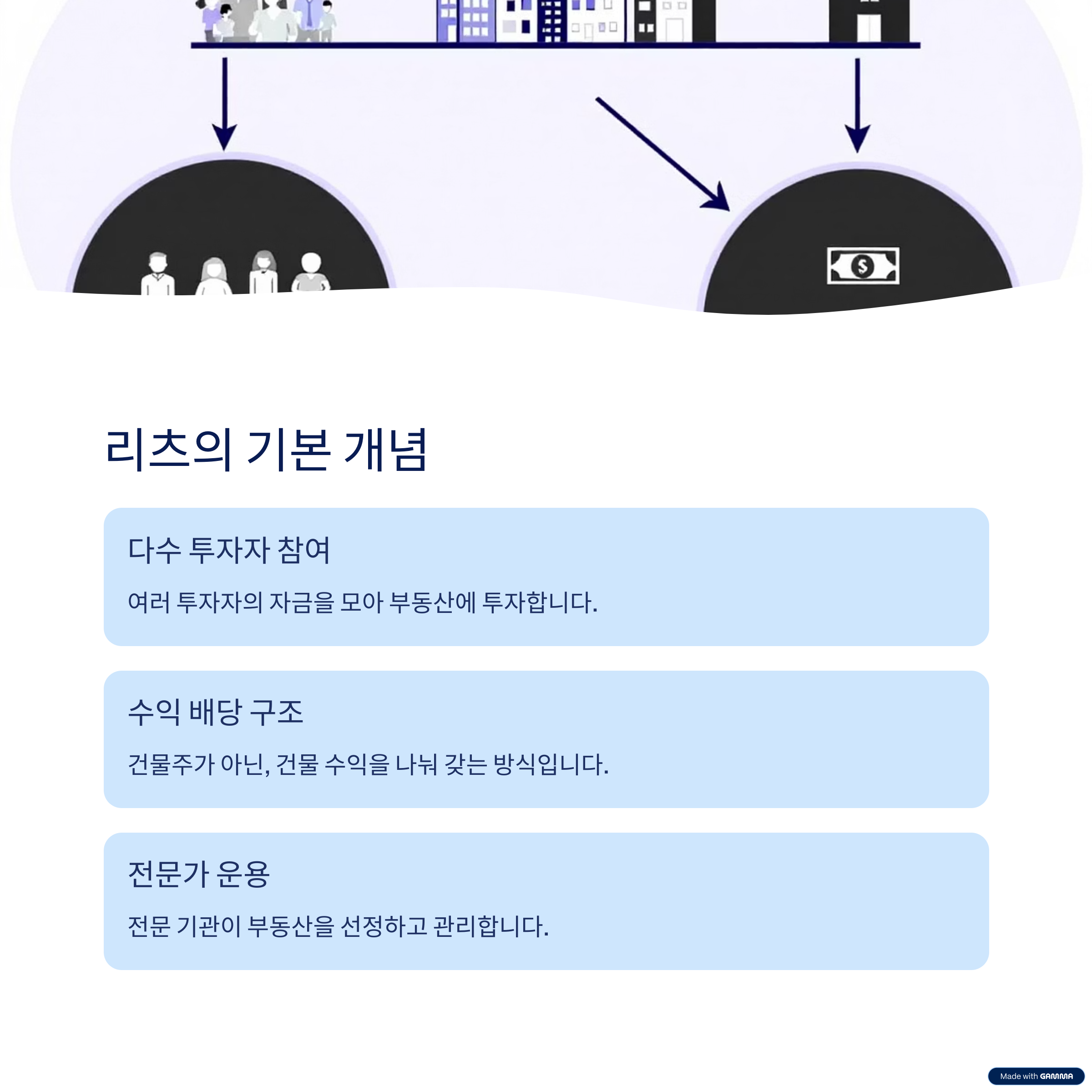 ๋ค์์ ํฌ์์์๊ฒ ์๊ธ์ ๋ชจ์ ๋ถ๋์ฐ์ ํฌ์ํ๊ณ ์์ต์ ๋ฐฐ๋นํ๋ ๊ตฌ์กฐ์