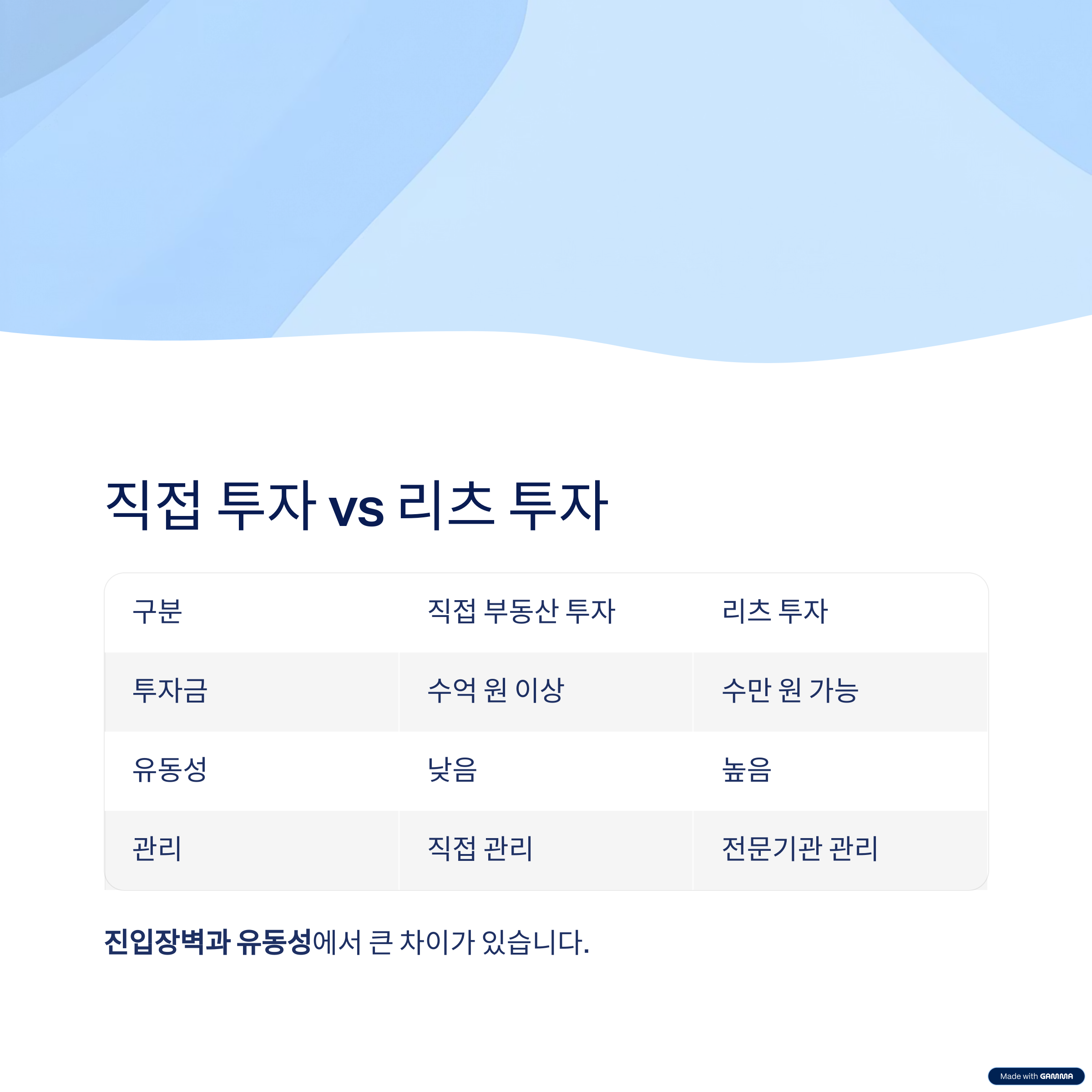 ์ง์ ํฌ์์ ๋ฆฌ์ธ ์ ๊ฐ์ฅ ํฐ ์ฐจ์ด๋ ์ง์ ์ฅ๋ฒฝ๊ณผ ์ ๋์ฑ์ ๋๋ค.