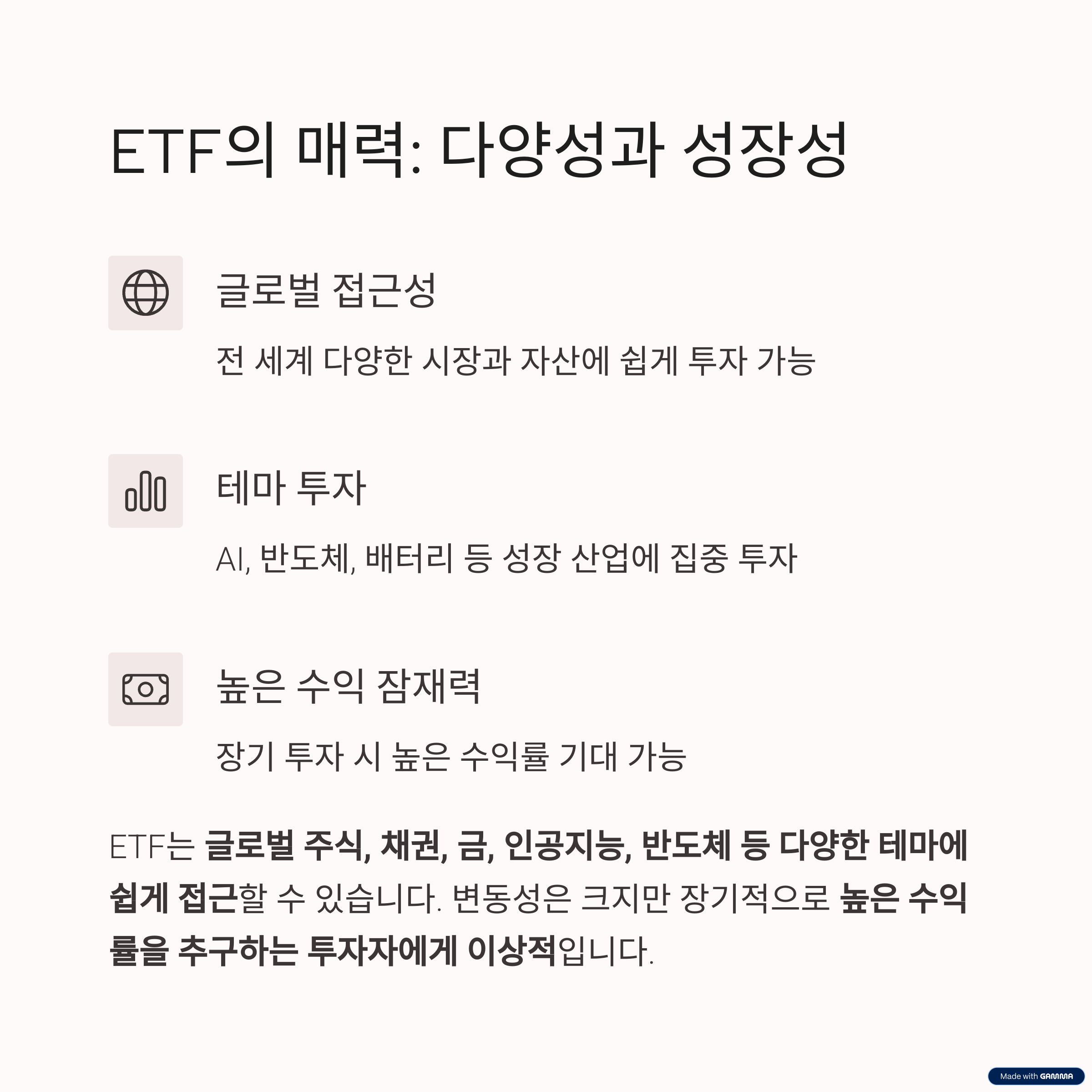 ETFλ μ±μ₯μ±κ³Ό λΆμ° ν¬μ, λ¦¬μΈ λ μμ μ±κ³Ό νκΈ νλ¦μ μ 곡ν©λλ€.