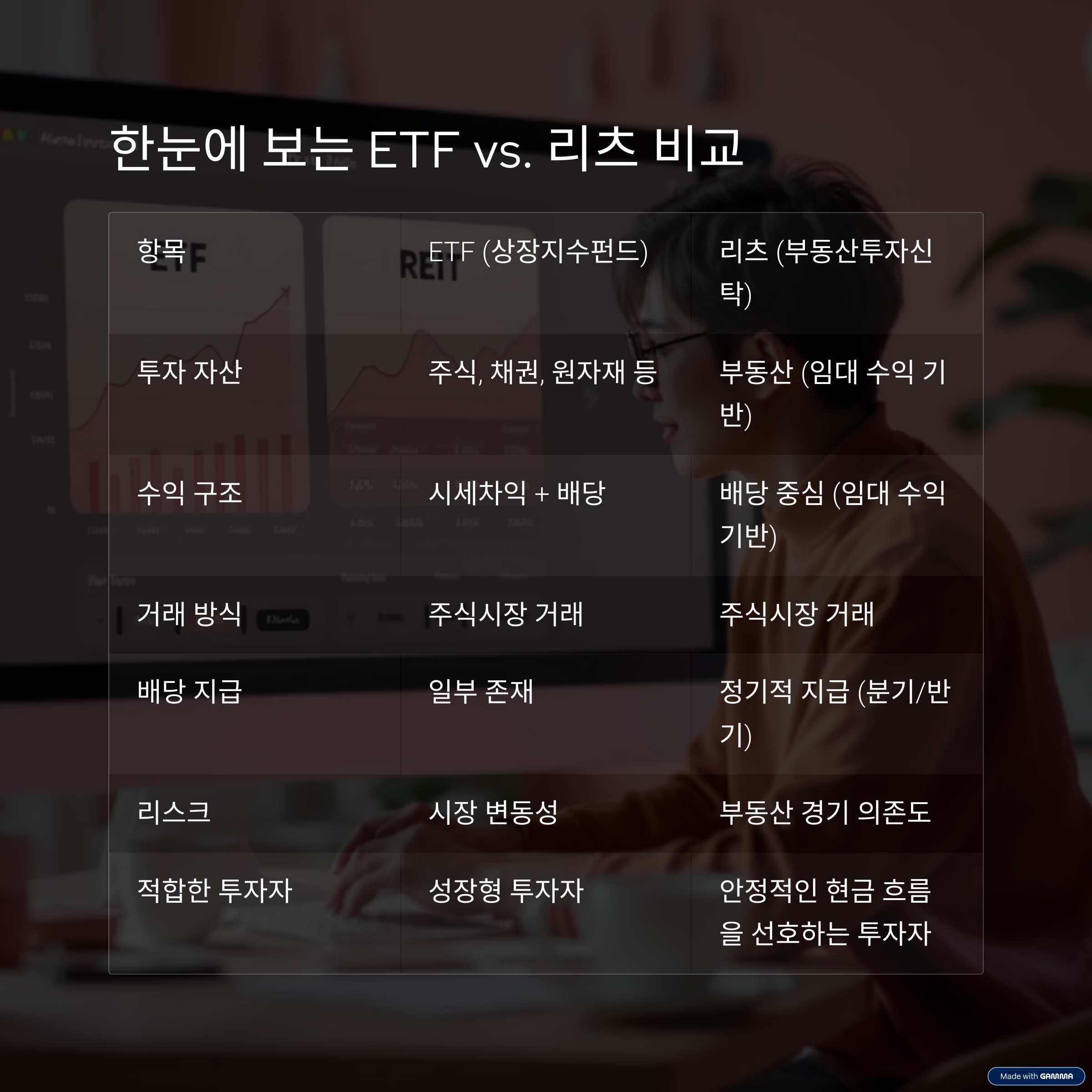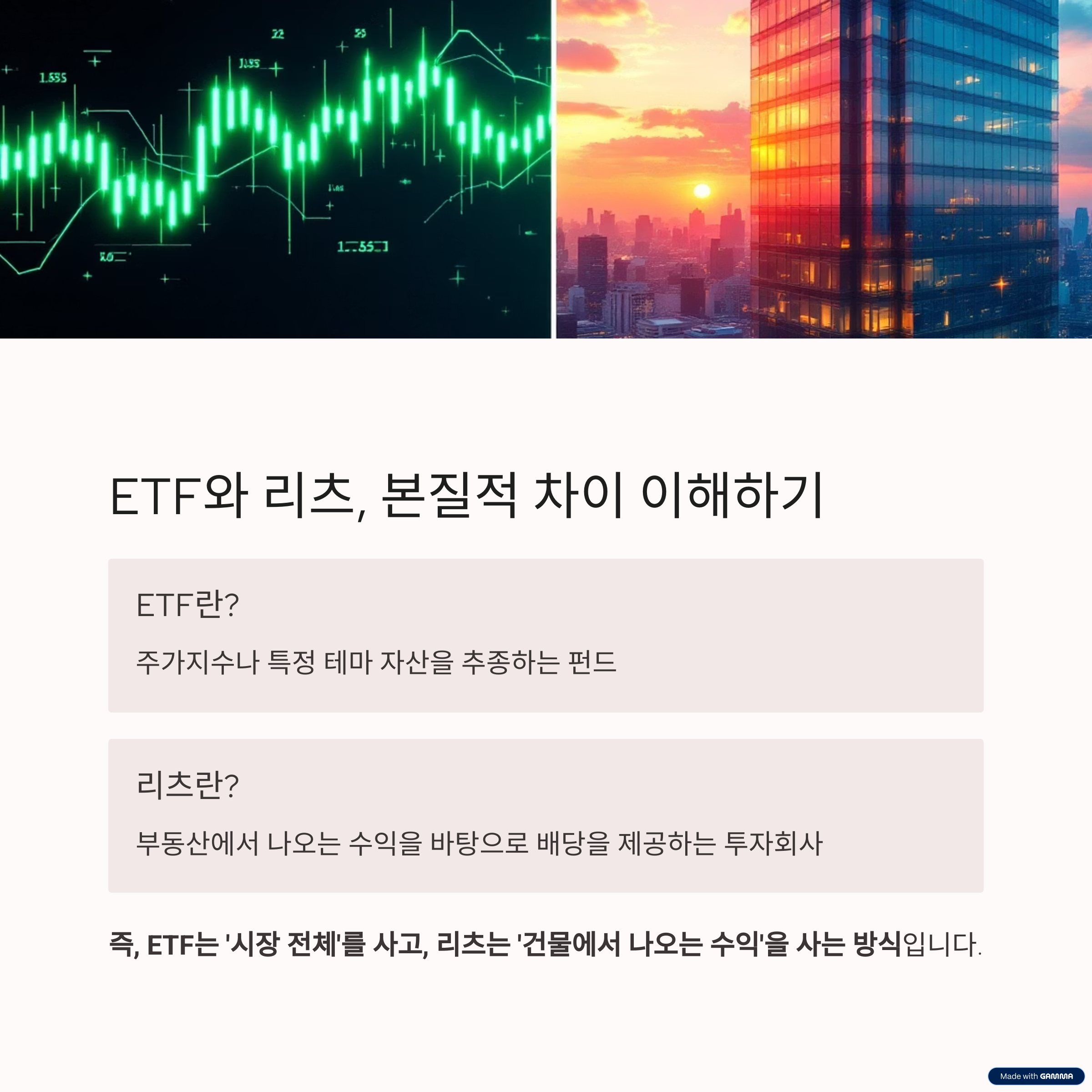 μ¦, ETFλ 'μμ₯ μ 체'λ₯Ό μ¬κ³ , λ¦¬μΈ λ '건물μμ λμ€λ μμ΅'μ μ¬λ λ°©μμ
