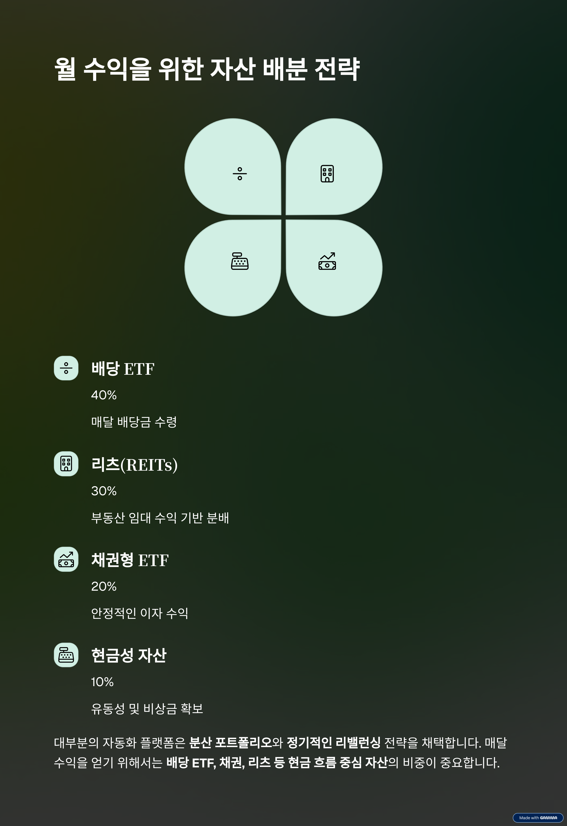 λ§€λ¬ μμ΅μ μ»κΈ° μν΄μλ λ°°λΉ ETF, μ±κΆ, λ¦¬μΈ λ± νκΈ νλ¦ μ€μ¬ μμ°μ λΉμ€μ΄ μ€μν©λλ€.