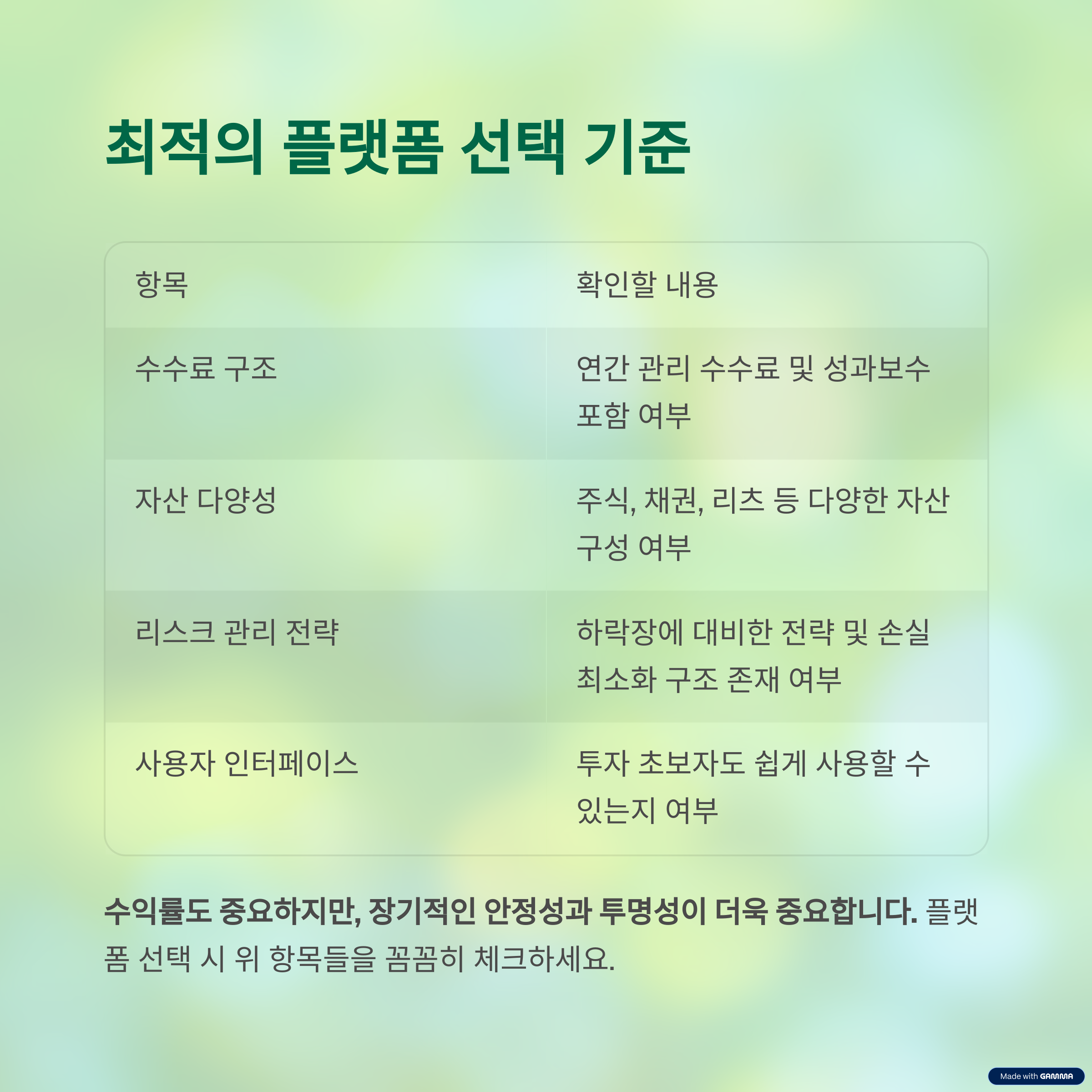 μλν ν¬μ νλ«νΌμ μ νν λλ λ€μ νλͺ©λ€μ λ°λμ 체ν¬ν΄μΌ ν©λλ€.